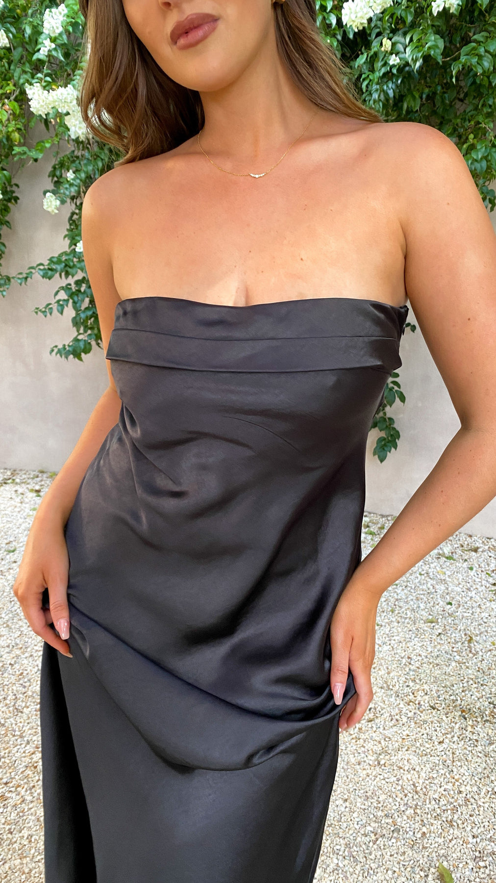 This dress will make you feel confident and irresistible and will showcase your personality and style. Made from satin, its comfort and freedom of movement are its main features. Additionally, its fitted cut and the elastic properties of its fabric ensure an exceptional fit, enhancing your figure and sculpting your silhouette.